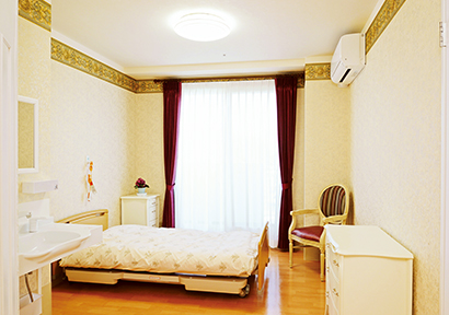 プライバシーに配慮した個室は、トイレ・洗面台完備の心地よい空間となっております。介護度や認知症の有無に関わらず、幅広くご入居を受け入れる体制を整えております。車いす対応の浴室も完備しており、入浴時のサポートも万全です。また、ナースコールを設置することで、急な体調変化にも素早く対応が可能です。お一人おひとりのニーズに合わせたサポートをご提供いたします。